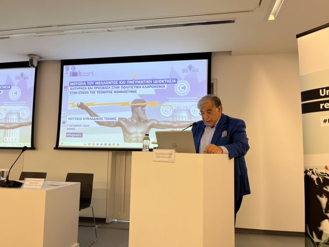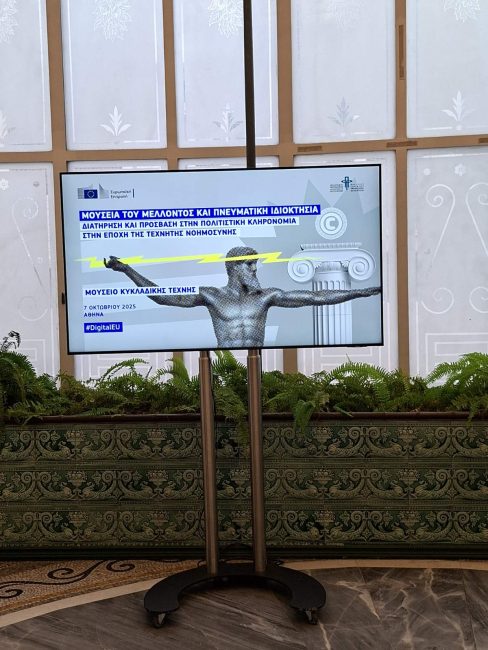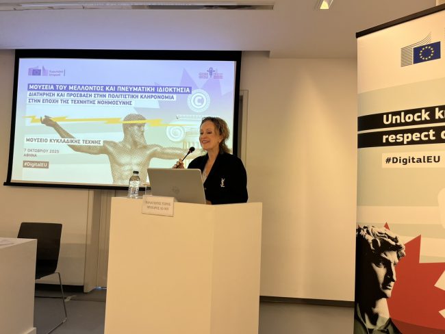The seminar “Museums of the Future and Copyright: Preservation of and access to cultural heritage in the age of AI” took place successfully on 7 October 2025 at the Museum of Cycladic Art in Athens.
