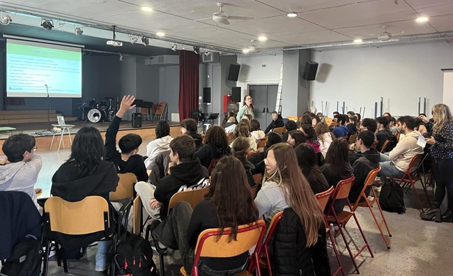 During the two-hour event, Ms. Maria G. Sinanidou, lawyer and scientific associate of the HCO, informed the 50 students of the 1st Grade of Lykion, in the presence of approximately 10 teachers, about the work of the HCO, the services it provides to the public, and the concept and importance of respecting copyright. Particular emphasis was placed on the digital environment and the modern challenges it creates, with references also made to the use of Artificial Intelligence (AI).