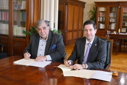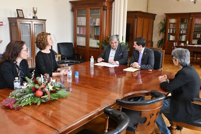 On Tuesday, 23 December 2025, a Memorandum of Cooperation was signed between the National and Kapodistrian University of Athens (NKUA) and the Hellenic Copyright Organization (HCO), during a meeting held at the Rectorate offices. The Rector of NKUA, Professor G. Siasos, welcoming the President of the Board of Directors of the HCO, Mr. Panagiotis Tsiris, the acting Director Ms. Maria Daphne Papadopoulou, and the executives of the HCO, emphasized that cooperation with HCO substantially strengthens the educational and research role of NKUA, offering members of the academic community valuable knowledge and expertise in a field of particular importance for science, culture, and innovation, namely copyright law. The signing of the Memorandum was also attended by the Vice-Rector for Academic Affairs, International Relations and Extroversion, Professor Sofia Papaioannou.
